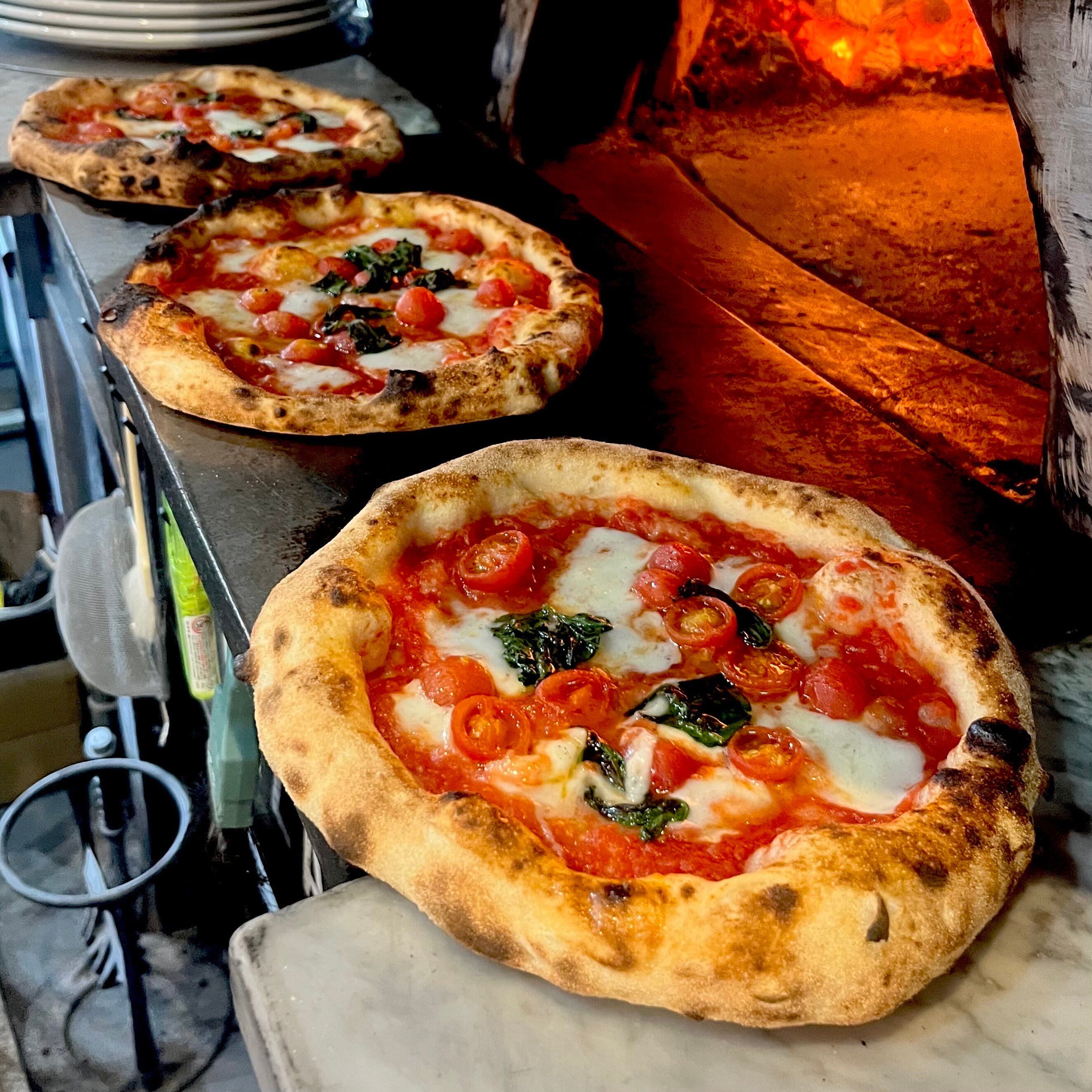 マルゲリータ・エクストラにセミドライトマトをトッピングしたスペシャルピッツァ